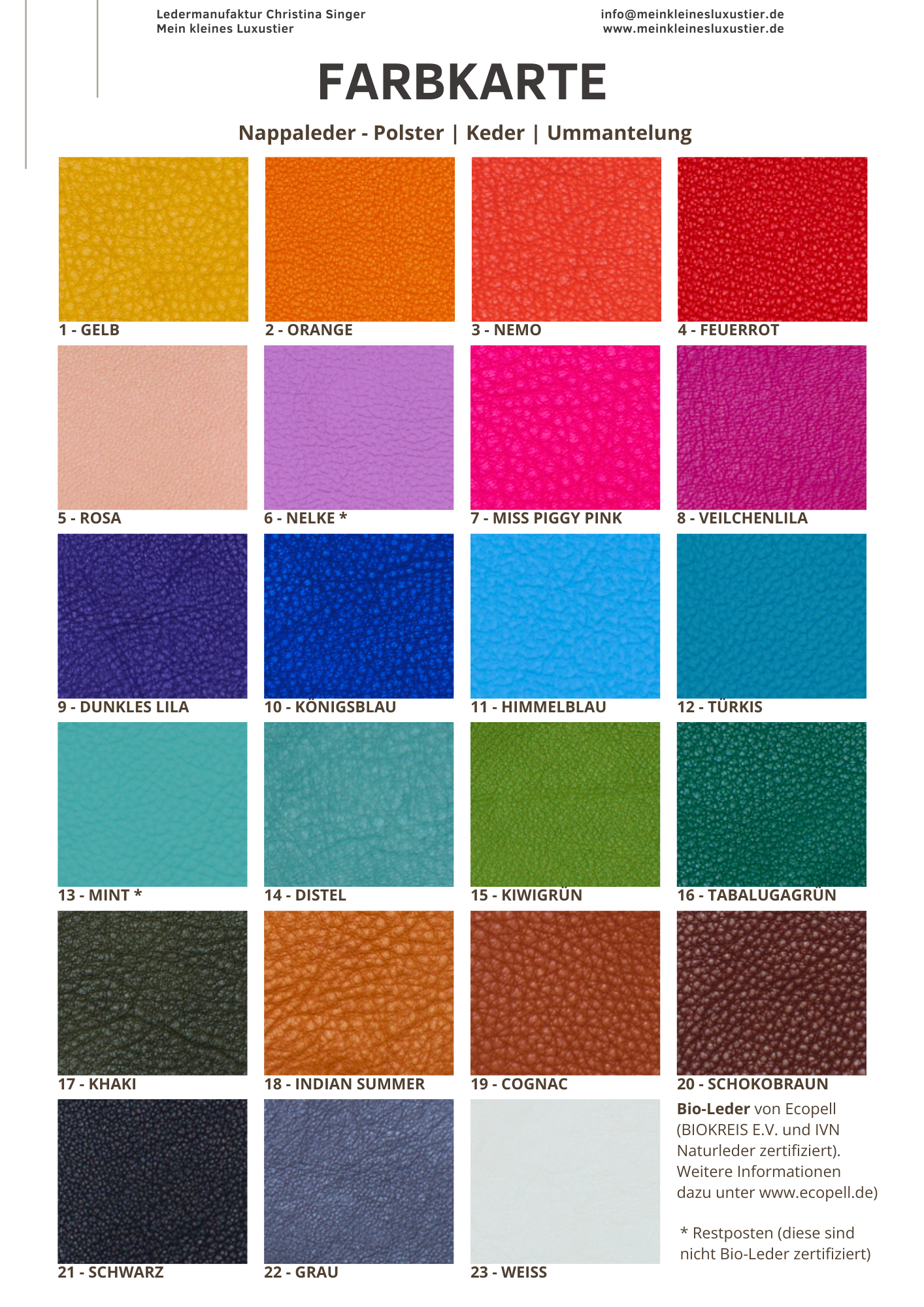 - Nahtfarbe und Polsterfarbe individuell bestimmbar