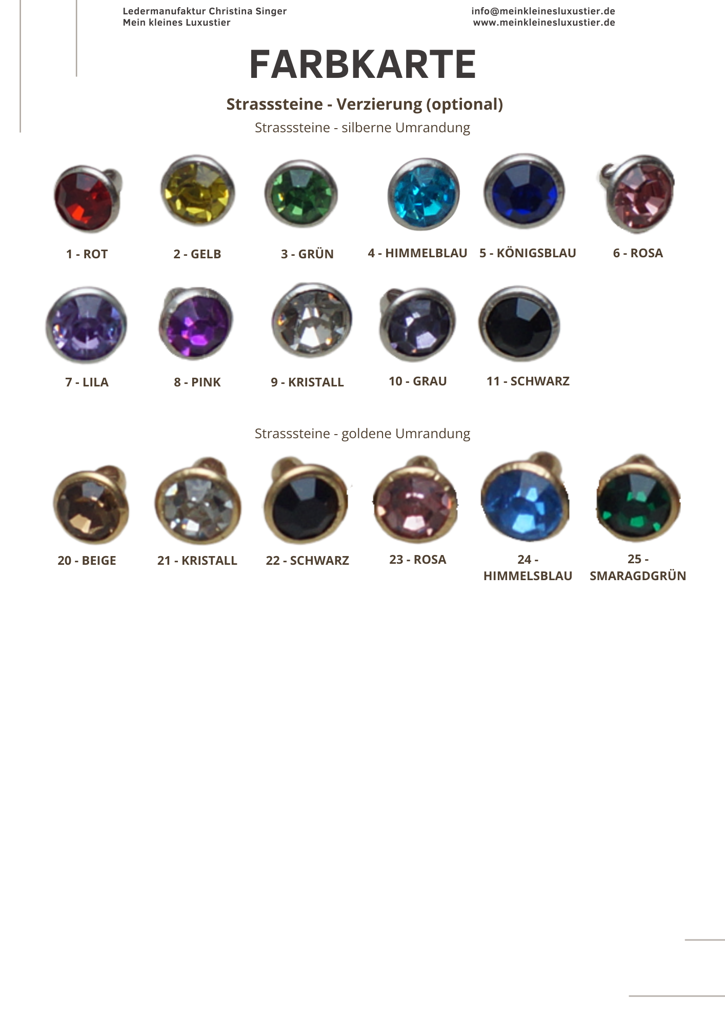 - Strasssteine möglich – dezent, klassisch oder auffällig – für einen Hauch von Glanz