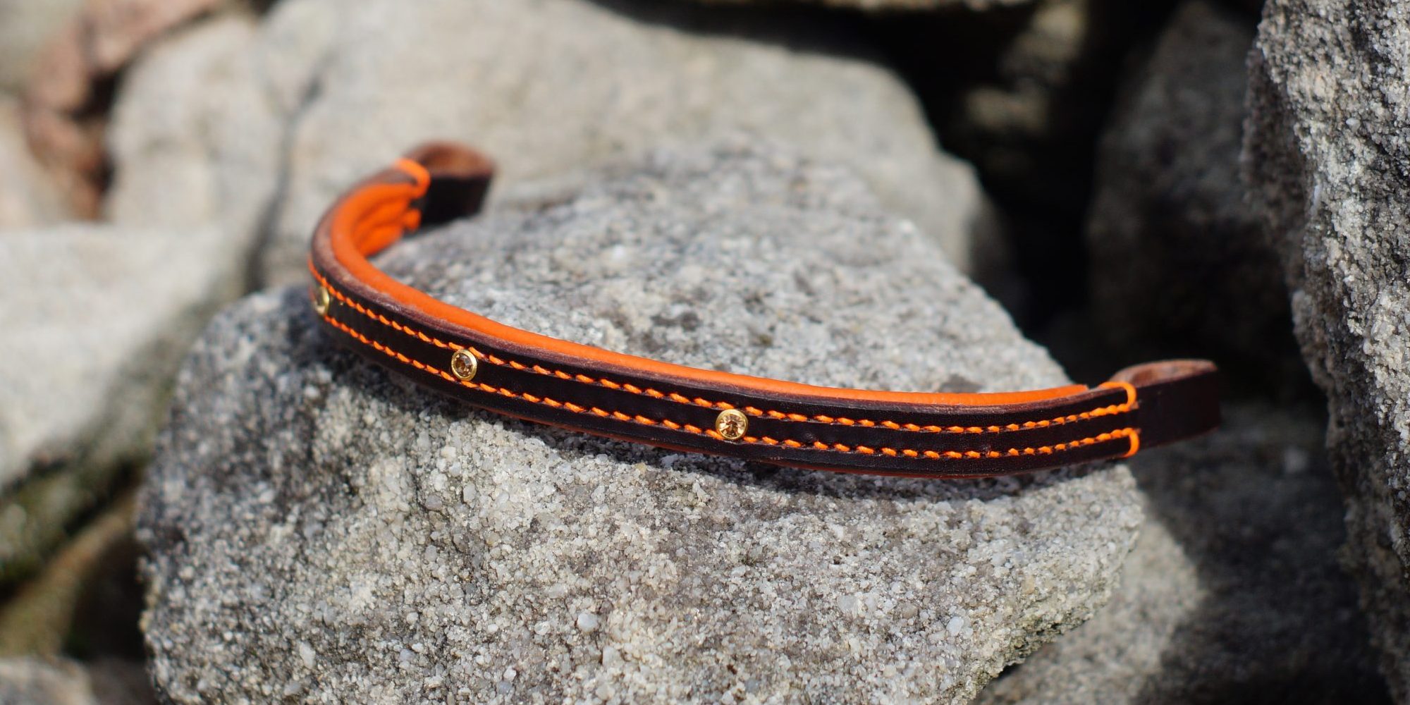 Wie bei all meinen Lederwaren verwende ich für den Stirnriemen ausschließlich ausgesuchtes, pflanzlich gegerbtes Rindsleder aus weitestgehend artgerechter Tierhaltung. Das Material ist weich, langlebig und umweltbewusst verarbeitet – perfekt für den täglichen Einsatz und viele Jahre Freude.